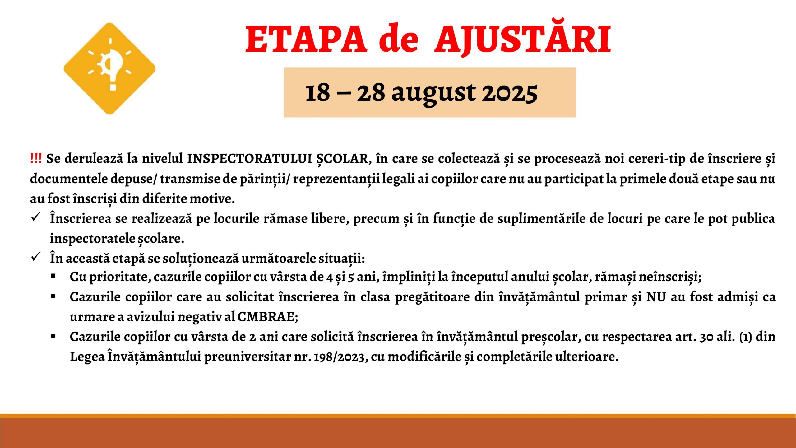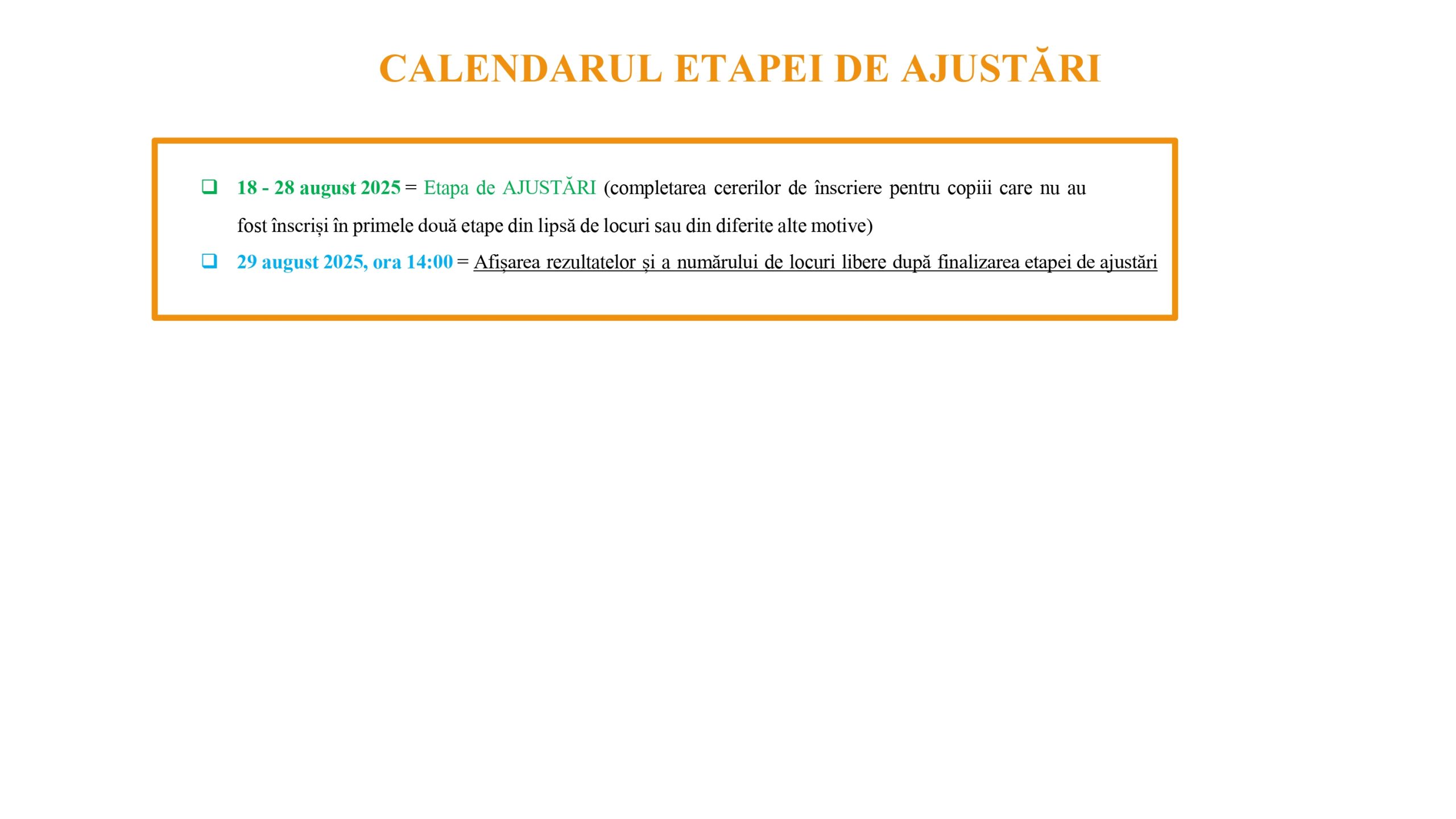 Vă informăm că toate dosarele depuse în etapa de ajustări au fost admise.